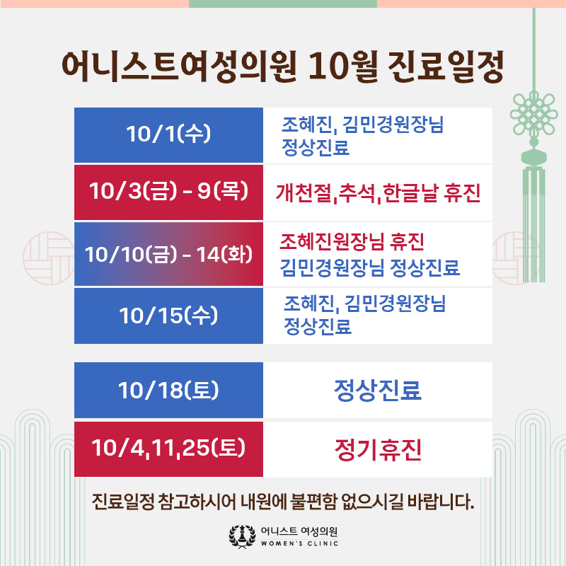 오늘은 10월 진료 일정을 안내해 드리겠습니다.
