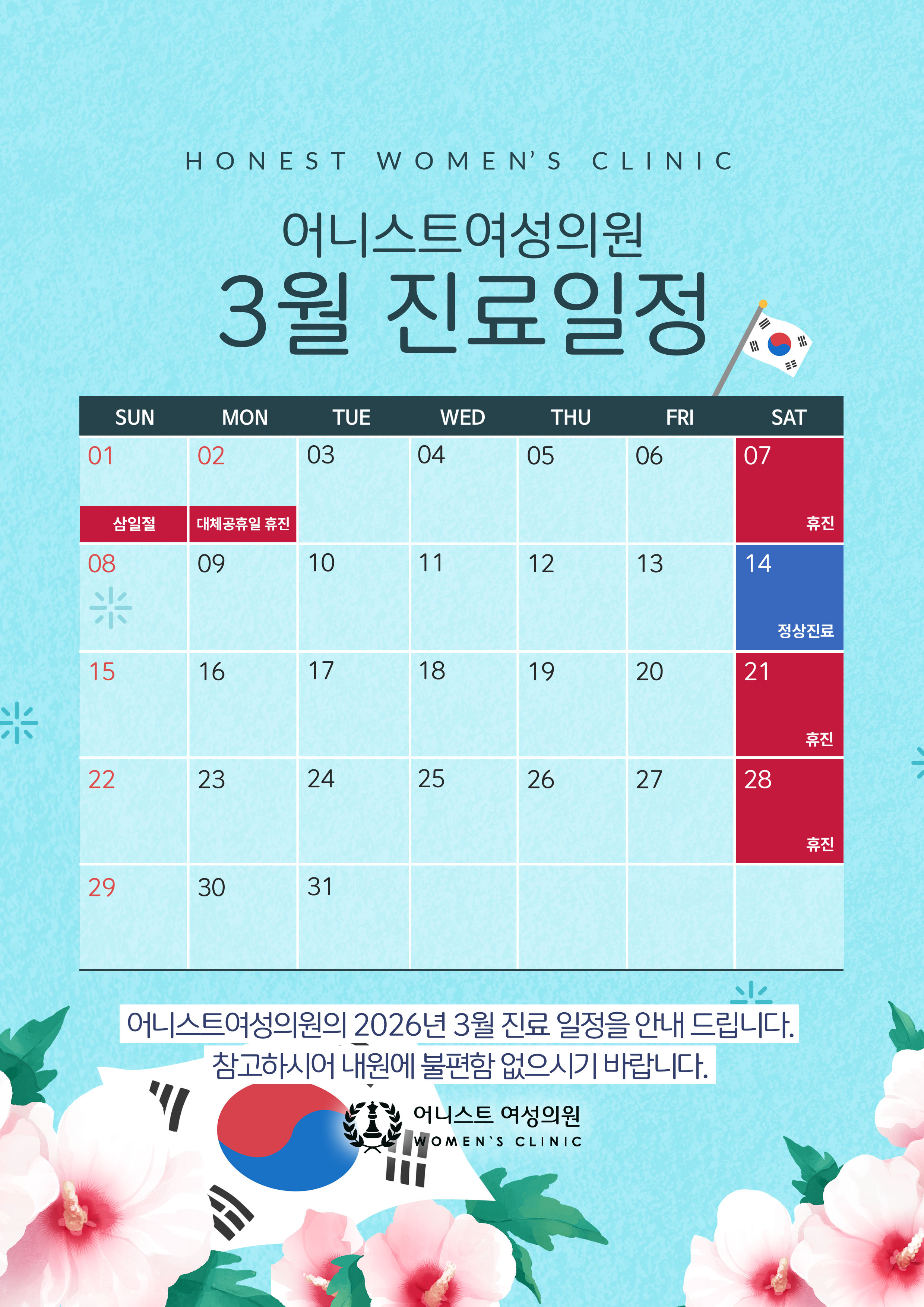 토요일 정기휴진 : 3/7, 3/21, 3/28