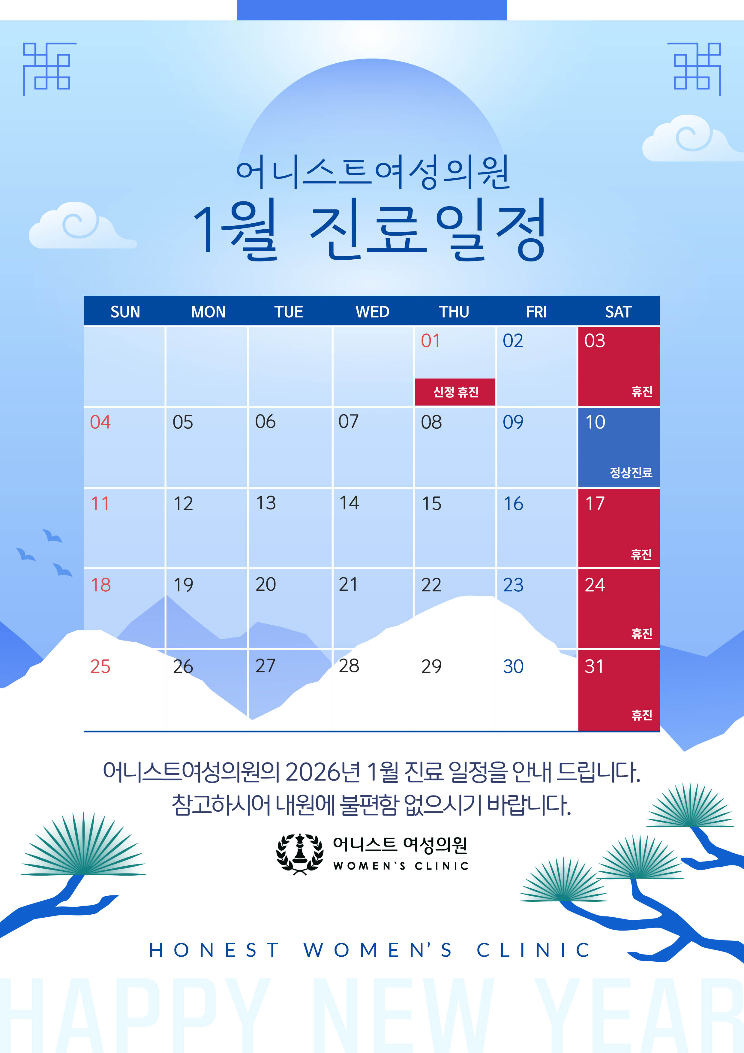 | 토요일 | AM 10:00 - PM 03:00 (점심시간 없음/2째주만 진료) |